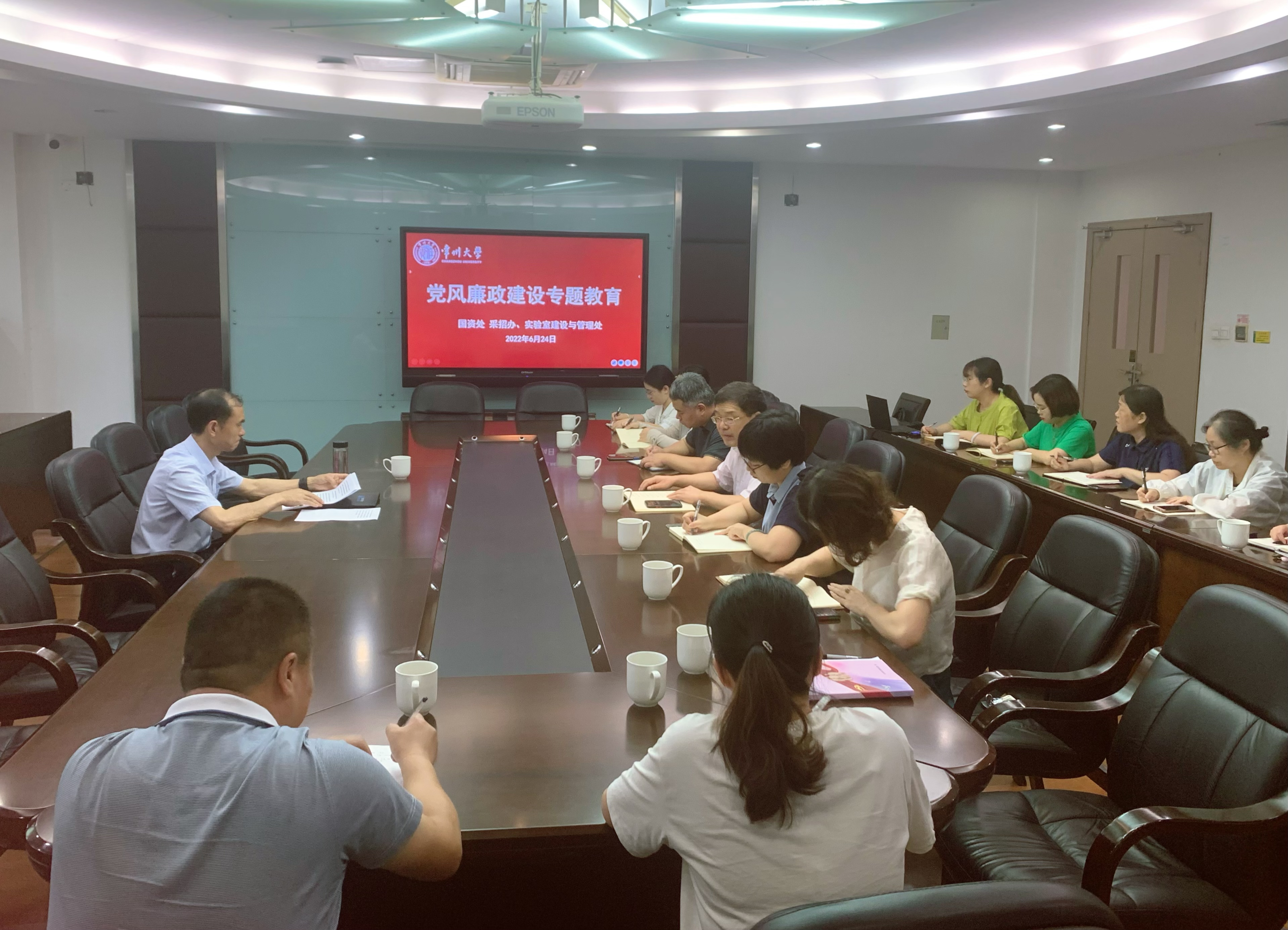 6月24日上午,常州大学党委常委、纪委书记邱正祥应邀为国有资产管理处 采购与招标管理办公室(合署)、实验室建设与管理处全体人员做党风廉政教育专题辅导。
