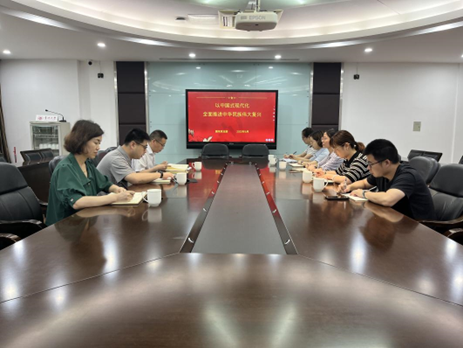 6月20日上午在文正楼第一会议室,国采党支部书记蒋伟中为支部全体党员作题为《以中国式现代化全面推进中华民族伟大复兴》主题教育专题党课。活动由支部副书记汤建华主持。