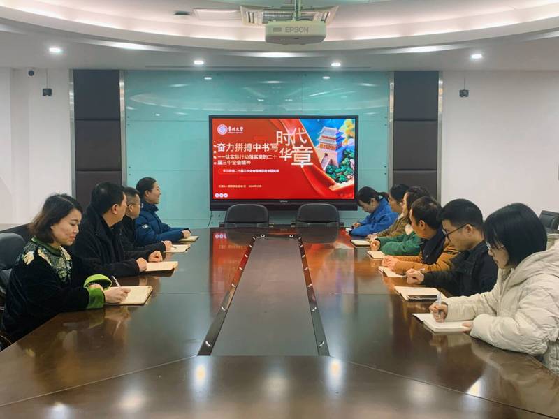 为进一步宣传和引导党员干部加强学习贯彻党的二十届三中全会精神,12月16日上午,国采党支部书记赵江在科教城校区文正楼第一会议室为支部党员讲授专题党课《奋力拼搏书写时代华章 以实际行动落实的党的二十届三中全会精神》。